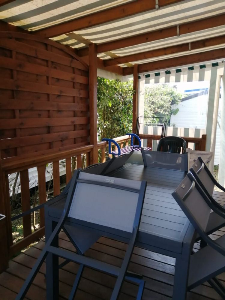Il est équipé d'une télévision et de tous les ustensiles de cuisine pour 4 personnes. Il est aussi doté d'un salon de jardin avec barbecue charbon.