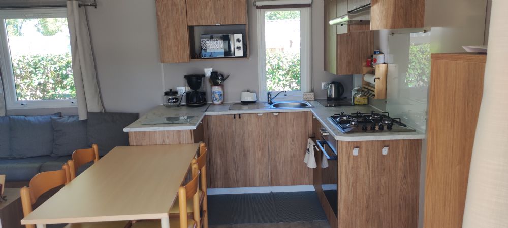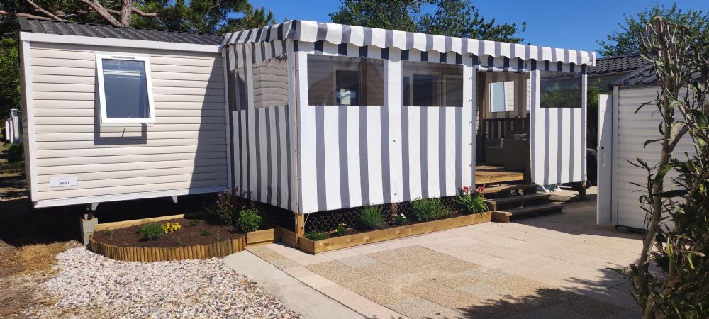 Mobil home 2 chambres, 2 salles de bain, 2 WC, équipé pour 4/5 personnes.